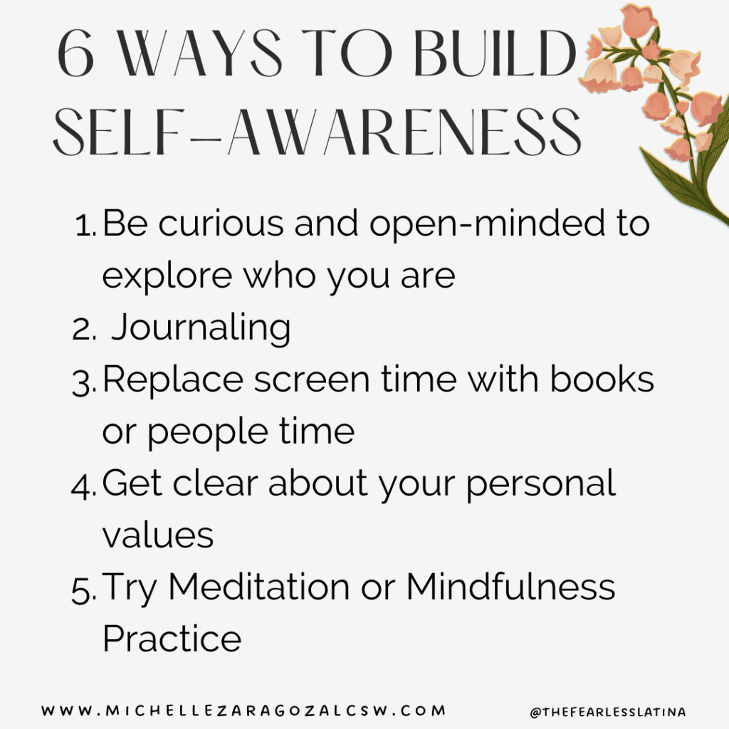 One of the most important things you can do to build self-awareness is to identify your values. You can consider what is most important to you in your life and how you want to be. If you realize that your decisions are not aligned with your values, then that could be a sign that need to be more self-aware. Self-awareness helps us live a life that is intentional and thoughtful with what we find important. You might make a list of what are things in life you find to be important. Then you can reflect on how much you focus your energy on these things in reality.